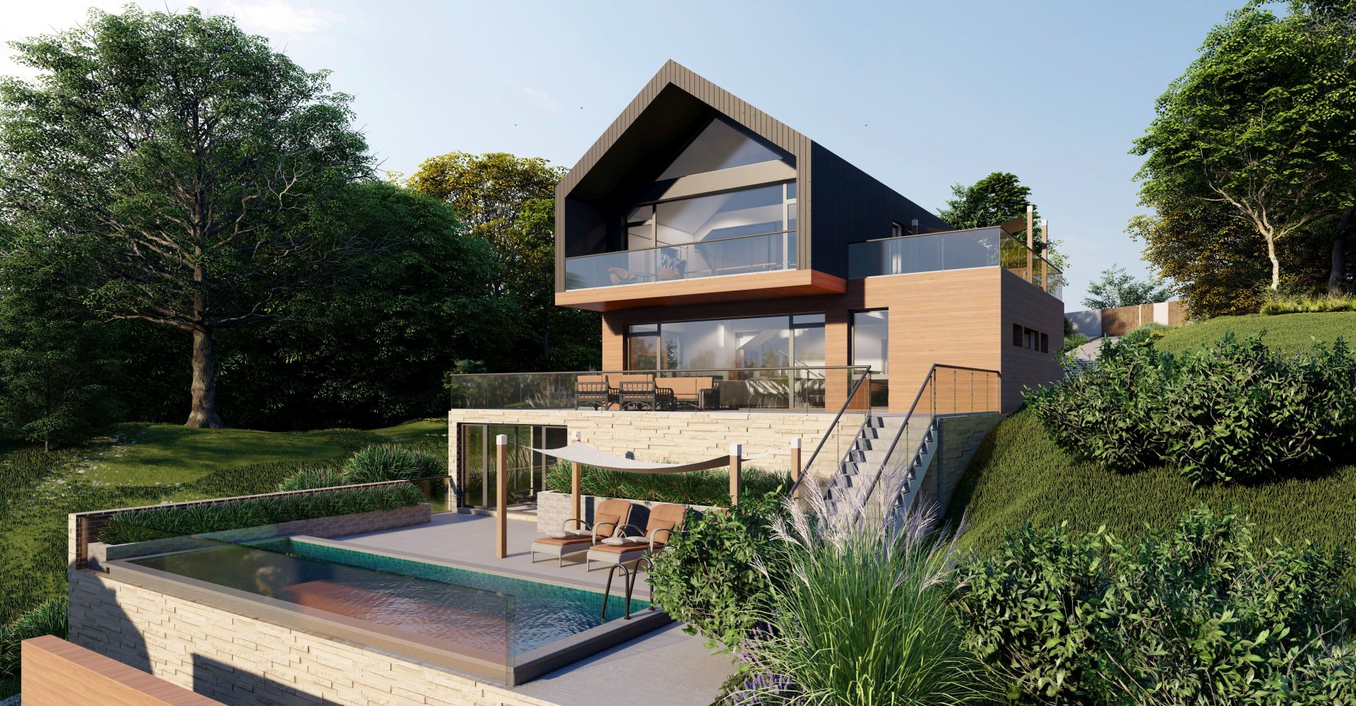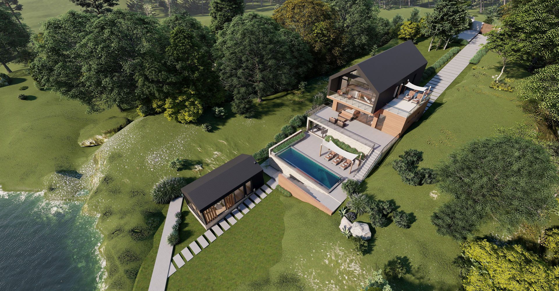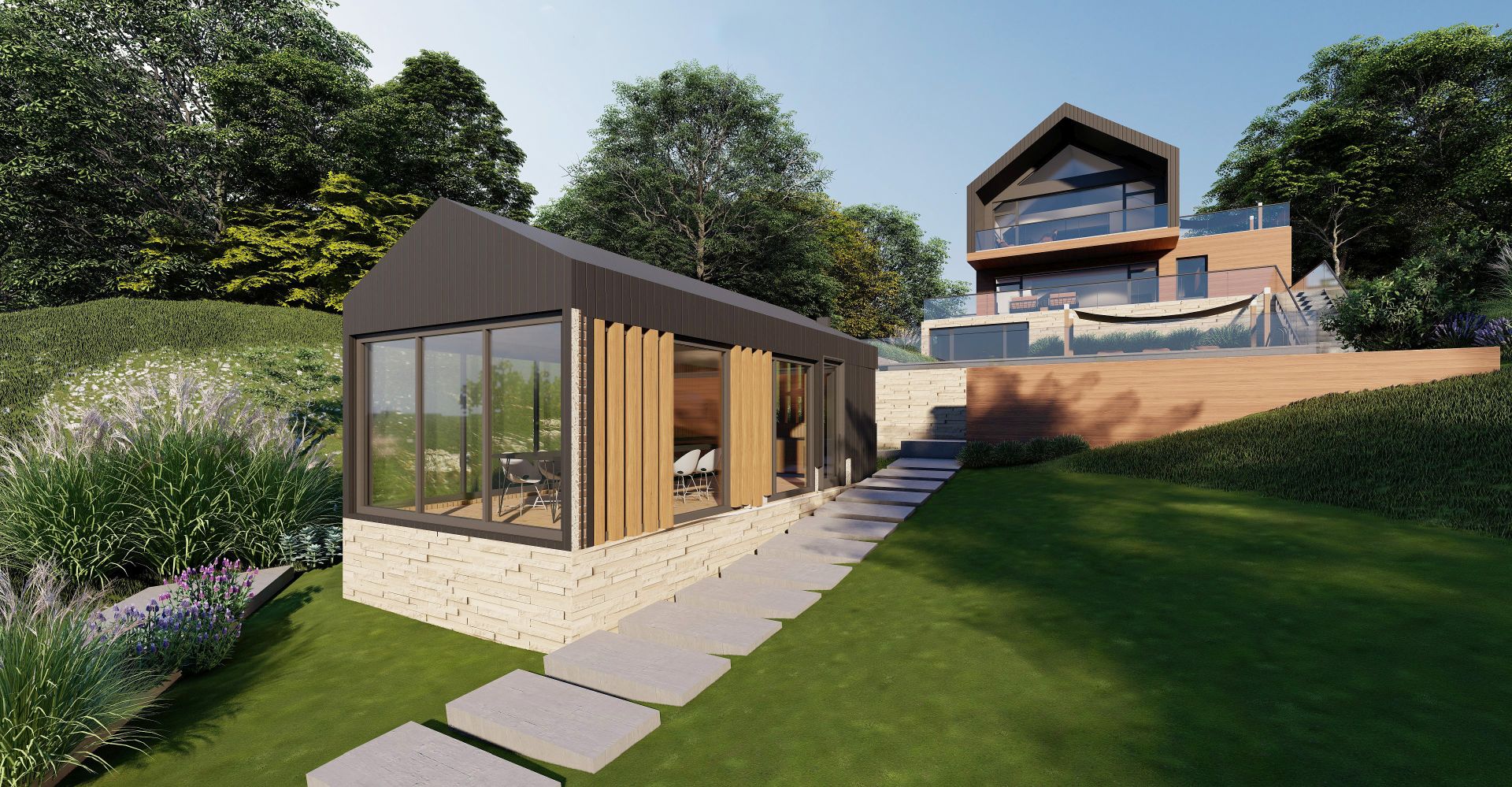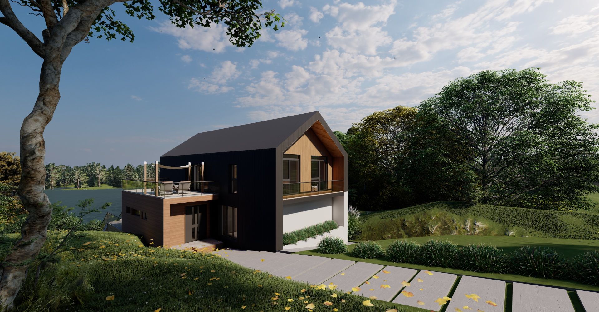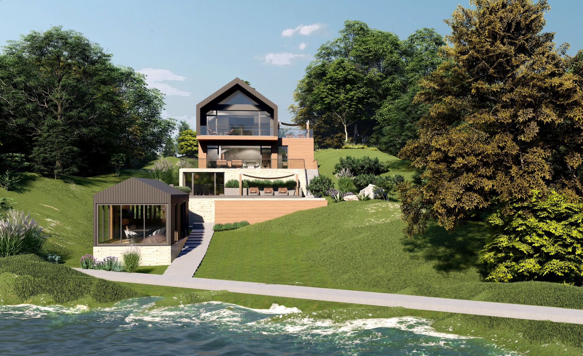 Conceptul care a stat la baza propunerii a fost acela de relationare cat mai mult cu mediul inconjurator, profitand de privelistea ofertanta catre lac si imprimand o estetica vernacular contemporana prin utilizarea acoperisului in doua ape de tip scandinav.
